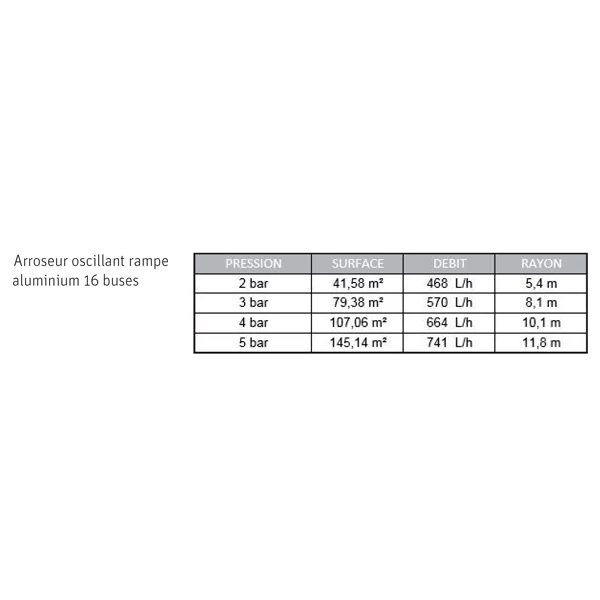 | Conditionnement | 1 arroseur oscillant aluminium avec 16 buses |