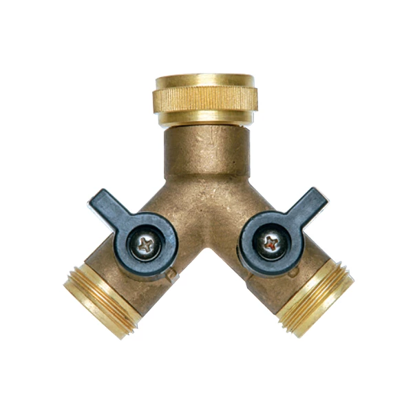 SĂ©lecteur Y 2 directions 1 entrĂ©e femelle 2 sorties mâle 20x27mm avec vannes d’arrĂŞt – Pour nez de robinet – Laiton