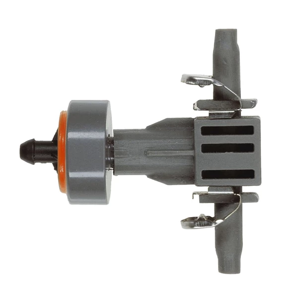 Ce goutteur en ligne régulateur de pression est un élément du système d’arrosage goutte à goutte « Micro-Drip » Gardena.