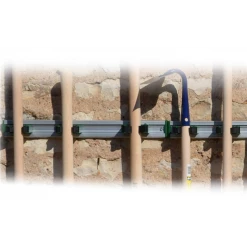 Ce Porte-outils mural se compose d’un rail et de 5 crochets de suspension. 2 crochets pour des manches de 30 à 40 mm de diamètre et 3 crochets pour des manches de 20 à 30 mm.